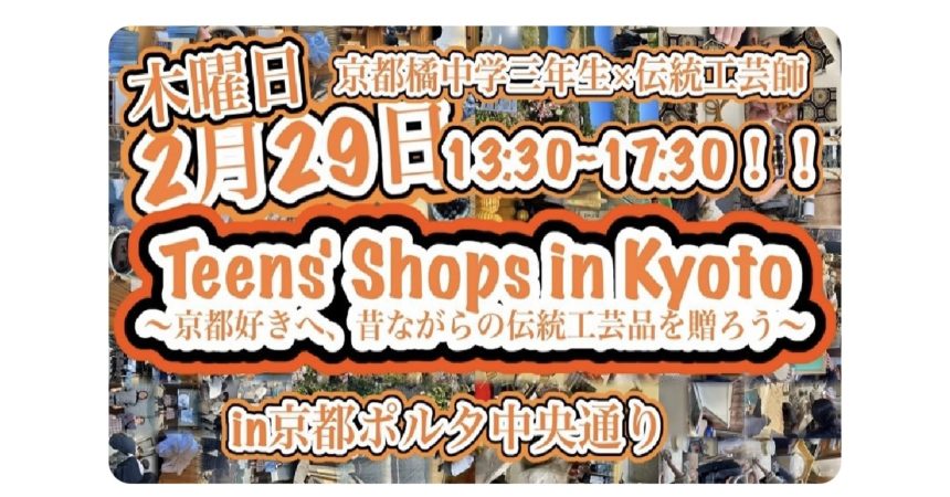 去年から京都橘中学校の生徒さんへ京藍染の授業や体験を通して 生徒達が自発的に製作した京藍染作品が2/29 京都ポルタ中央通りにて販売会が開催されます 販売は13:30~17:30まで 詳細は京都ポルタホームページの下記リ […]