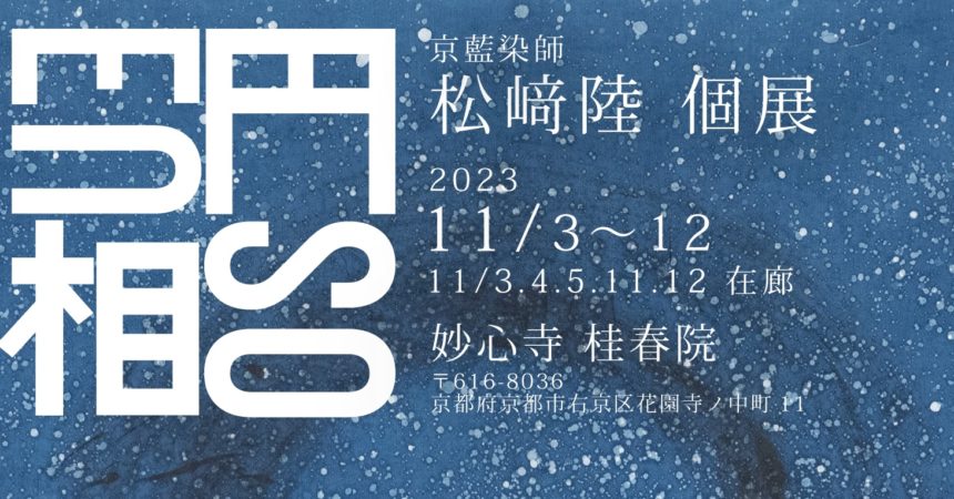 【個展のご案内】 妙心寺 桂春院で個展を開催します。 円相をテーマに一円相に向き合っていく過程を記録した作品を展示します。 是非お運びください。 「松﨑陸 京藍 染展」会期:2023年11/3(金)~11/12(日)11 […]